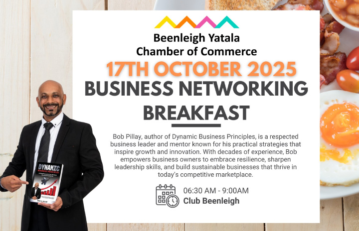 Don’t miss this opportunity to connect with local business leaders, gain fresh insights, and walk away inspired for your next stage of growth. The next Beenleigh Yatala Chamber of Commerce Networking Breakfast features special guest speaker Bob Pillay, author of Dynamic Business Principles. Bob will be sharing his powerful 5-step process for business growth and […]