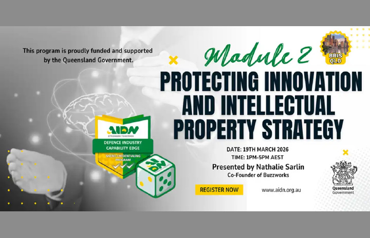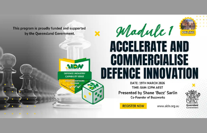 AIDN QLD (Online) Micro-Credential Course: Accelerate and Commercialise Defence Innovation Mar 19 AIDN QLD (Online) Micro-Credential Course: Accelerate and Commercialise Defence Innovation 8:00 am - 12:00 pm Free